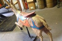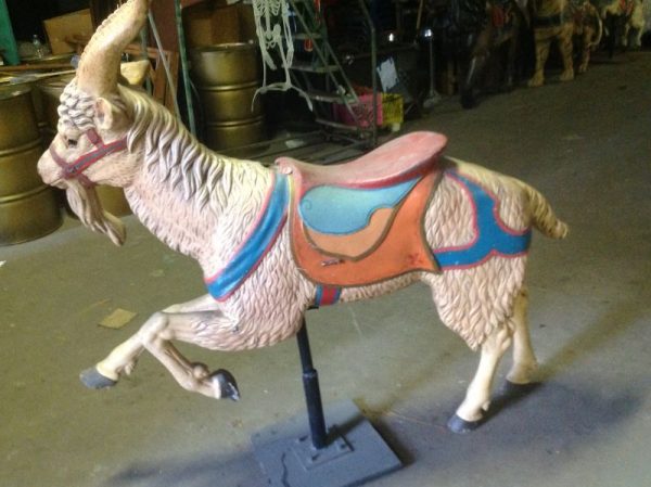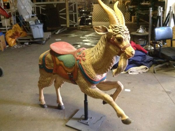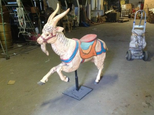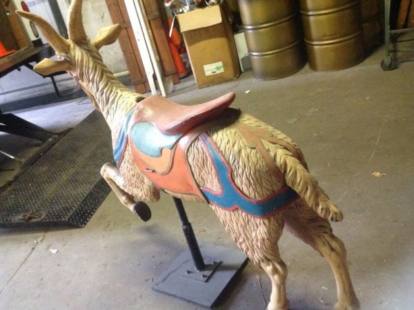 Vintage fiberglass carousel Goat store display in as found condition. Overall in very nice condition but may need some light cleaning and touch up. Comes complete with stand. Goat along with the other animals posted were used by the now closed Philadelphia, Strawbridge and Clothier department store back in the early 80’s, stored away for over 25 years until we found them a few weeks ago. May have been made by Tobin Farley………….