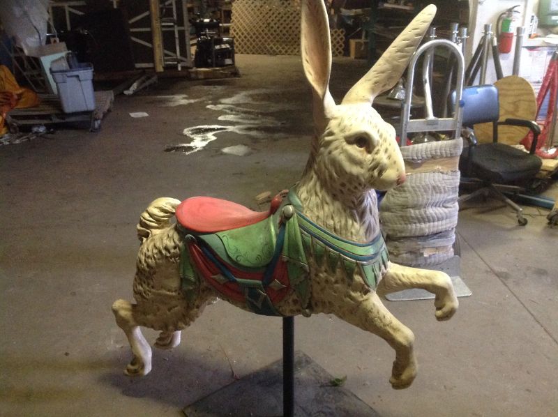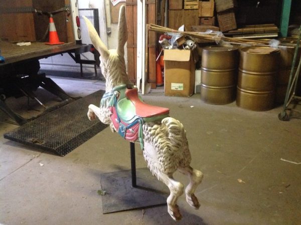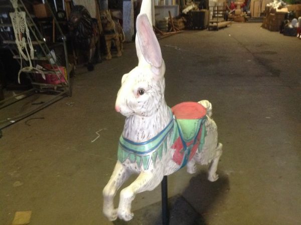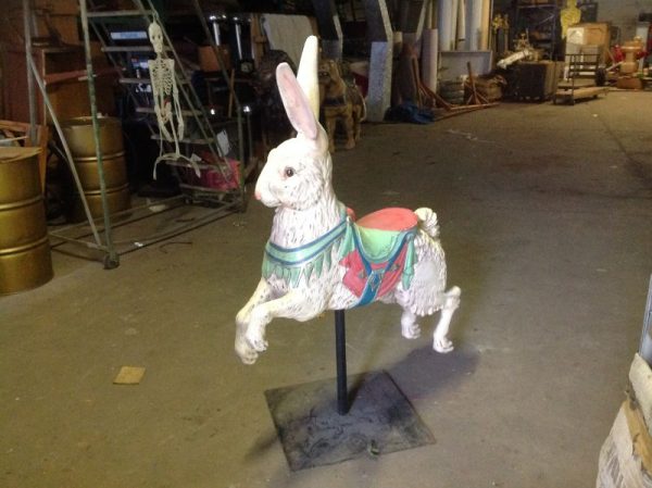 Vintage fiberglass carousel Rabbit store display animal in as found condition. Nice looking with stand included but may need some light cleaning and touch up. Rabbit along with the other animals posted were used by the now closed Philadelphia, Strawbridge and Clothier department store back in the early 80’s, stored away for over 25 years until we found them a few weeks ago. Maybe a Tobin Farley animal, not sure. He will brighten up almost any room…….