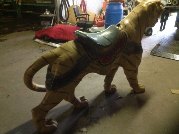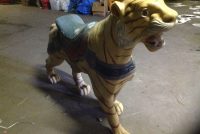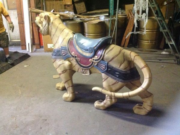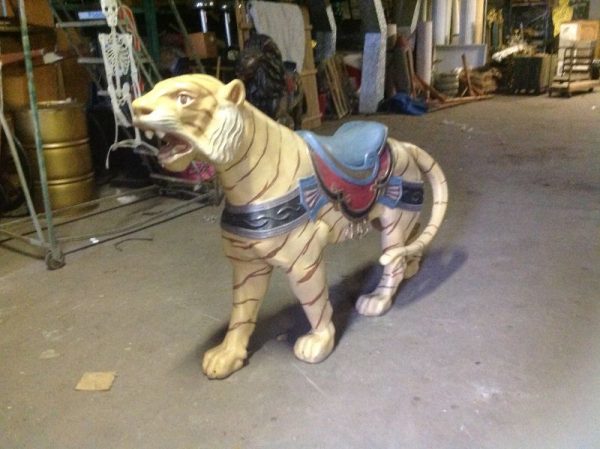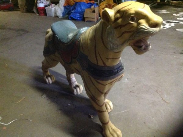 Vintage fiberglass carousel tiger store display in as found condition. Minor touch up and restoration may be needed but overall ready for displaying. Tiger along with the other animals posted were used by the now closed Philadelphia, Strawbridge and Clothier department store back in the early 80’s, stored away for over 25 years until we found them a few weeks ago. Heavy fiberglass construction and believed to be made by Tobin Farley.