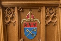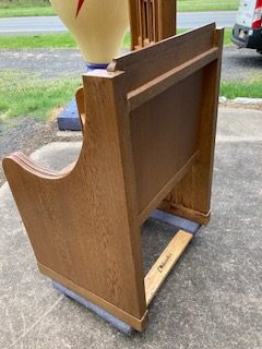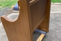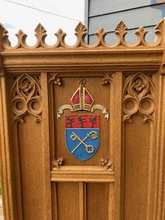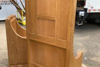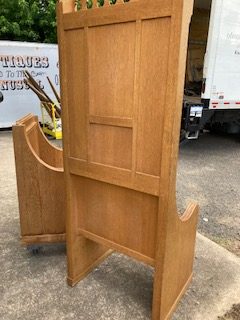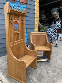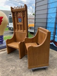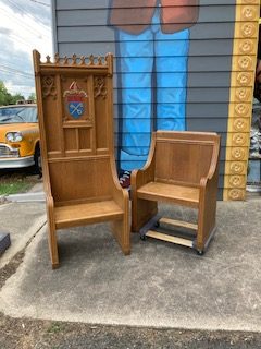 Vintage Throne Chairs from a Manchester,CT. Episcopal Church that closed after Covid, in as found condition. Well made heavy oak construction . Sold by the pair only…………
