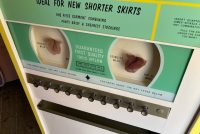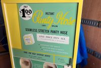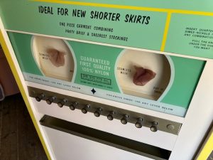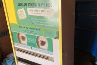Vintage coin operated pantyhose vending machine in as found condition. Beautiful graphics. Comes complete with some original pantyhose stock. A real attention getter. When the last time you saw on of these?………..