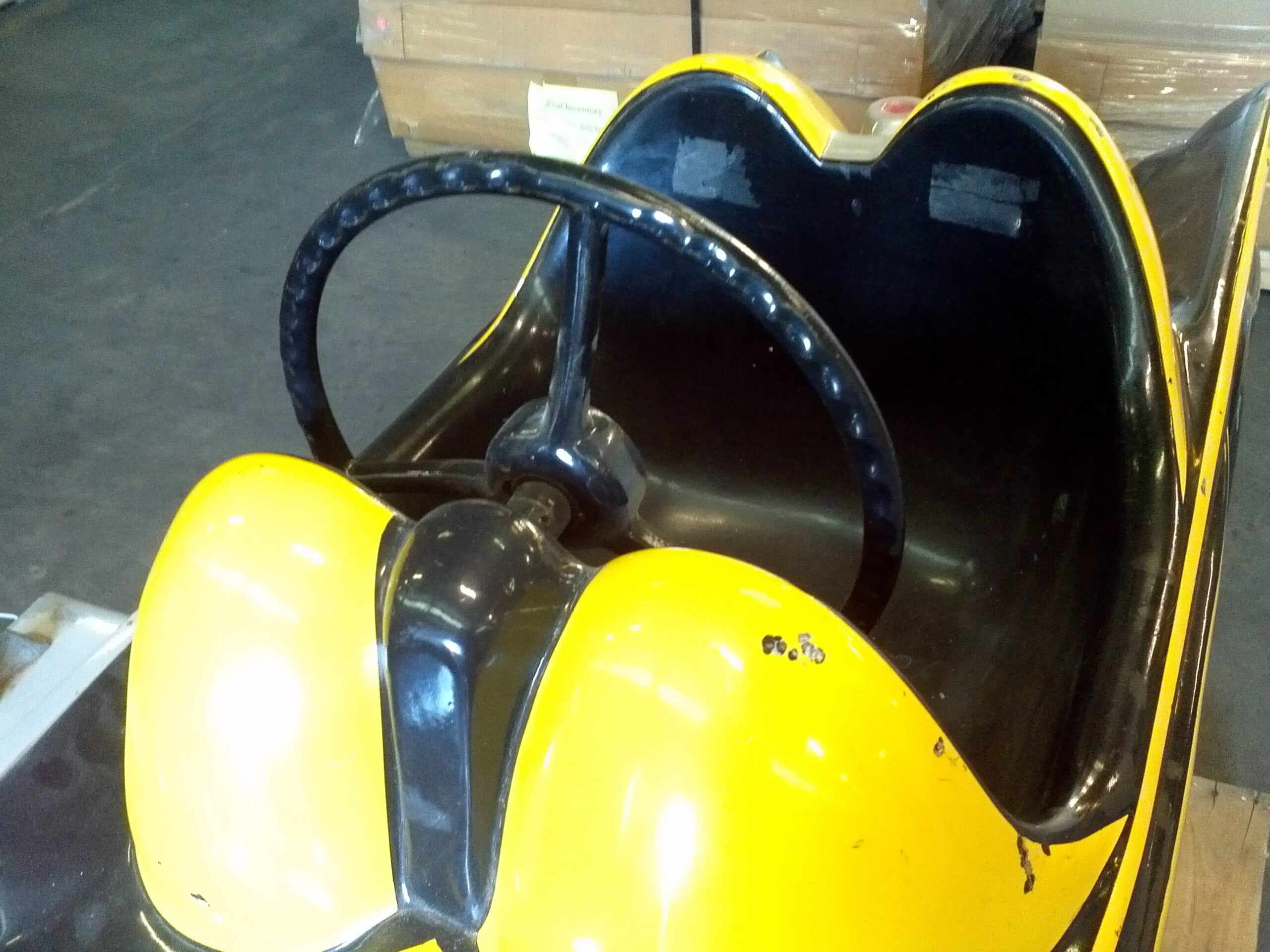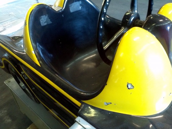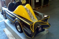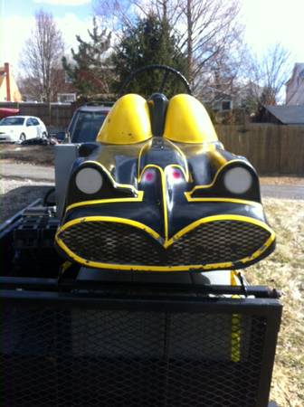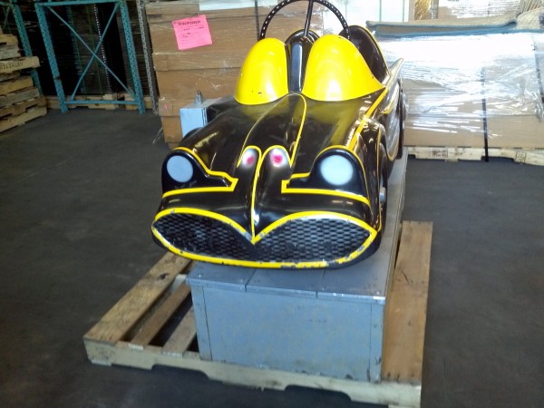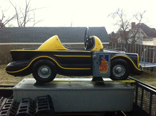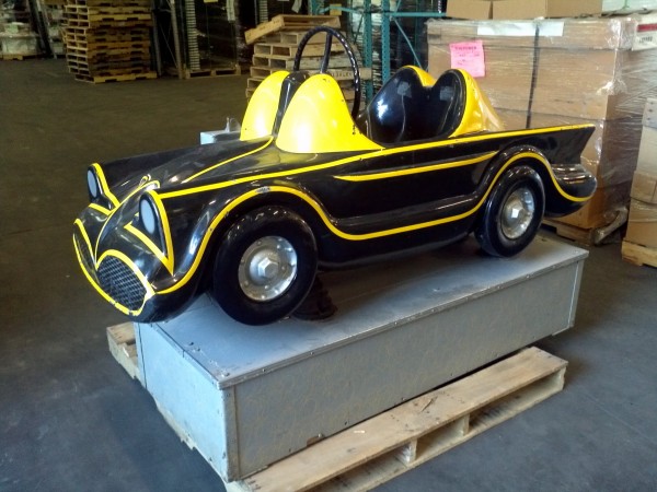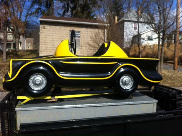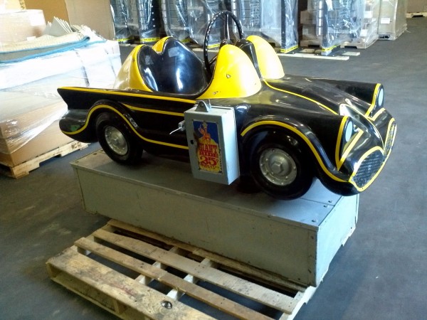 Vintage 1960’s coin operated penny arcade Batmobile ride in as found condition. Ride has some scratches, dings and will need some minor touch up but otherwise in very good working condition. A real child dream…………