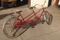 Vintage 1950’s Columbia Twosome two seater bicycle built for two bike in as found condition. Will need some restoration as the chrome has some pitting and  front light is missing, otherwise comes complete with what looks to be original seats.  Nice project for the handyman in you……………