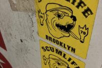 Vintage Brooklyn New York Astroland metal sign in as found condition. Sign measure about 4′ x 8′ with many decals from the 1970/1980 era. From Coney Island just before the closure of Astroland. A real iconic sign from Coney Island…………