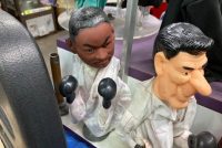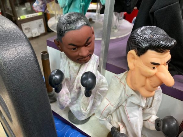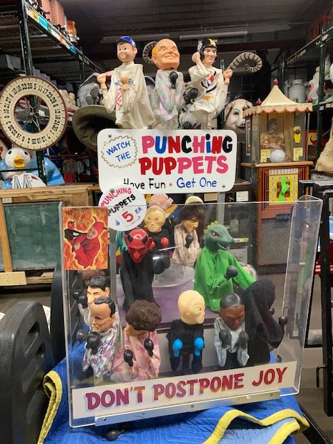 Vintage Coney Island Stand Animated Punching Puppets Display