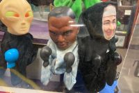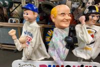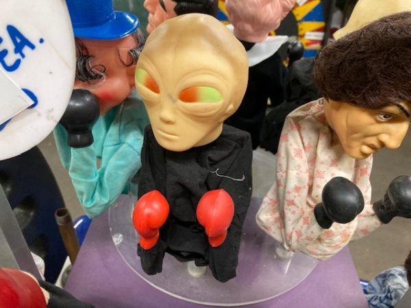 Unusual custom made Punching Puppets animated advertising display from Coney Island in as found working condition. Custom made by “Benny”, the legend amusement game operator under the “Big Wheel”.Comes complete with a dedicated 12v power supply to animate the display. Puppets jump up and down and appear to be boxing. Purpose of display was to sell “Punching Puppets” to interested customers. A real Coney Island novelty. 2 available including the puppets. as displayed below. Video of movement available, just ask…………..
