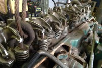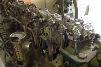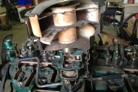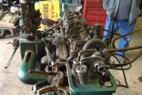 Vintage working shop display Chevy 235 cutaway engine in as found condition. Complete with crank to animate functions of the engine. Missing two push rod screw bolts but the rods are there. Stress crack in the oil pan but otherwise in very good condition for it’s age. Works smoothly. Pictures tell the story and say it all……..