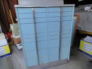 Vintage 1950’s dentist office cabinets with white glass inserts. Cabinets will need cleaning but otherwise look good for displaying. Buy one or both. Sold separately………