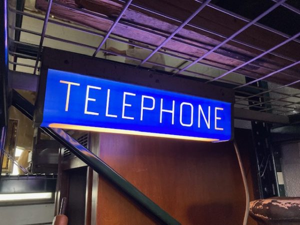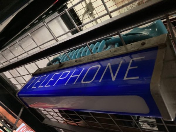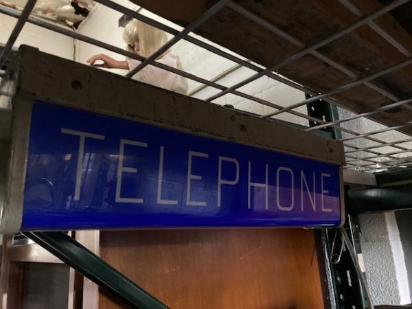 Vintage illuminated double sided telephone sign in as found condition. Nice overall shape and a good addition to any phone collection…..