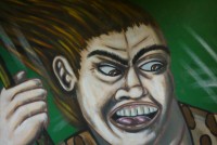 Large canvas sideshow banner signed Frierson Studios. Frierson started his banner painting career in 1980, Tampa, Florida and is currently the youngest of three remaining banner painter left in the United States. Measures about 10′ x 8′ with minor paint loss. For additional information, email or call…..