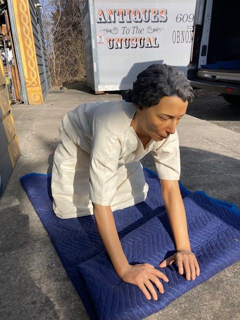 Vintage realistic woman scrubbing from Penns museum, Philadelphia in as found condition. Measuring 47″ l x 28″ h x 21″ w. Nice shape needing a new home to scrub………..