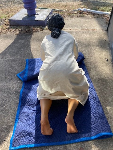Vintage Extremely Realistic Woman Scrubbing Museum Display Statue