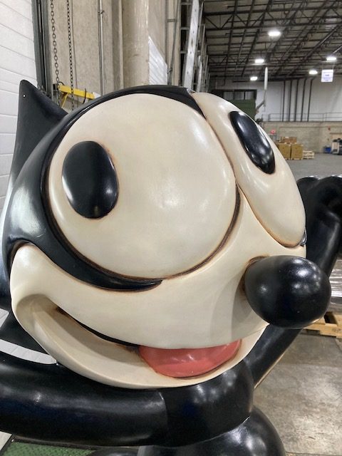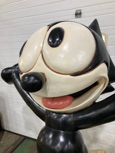 Larger than life sized fiberglass/resin vintage Felix The Cat from Universal Studios Orlando in as found condition. Marked Universal Studios, 2000. Just magnificent showing hardly any signs of wear. Probably a “one up” hard to find character produced for Universal exclusively for promotional purposes.