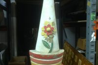 Vintage fiberglass amusement park clown head in as found condition. Nice old park paint but needing some restoration as paint is peeling. Measures almost 4′ 6″ tall x 12″ wide. Won’t you give him a good home………….