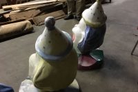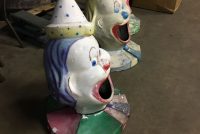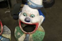 Vintage fiberglass amusement park clown trash can lid toppers in as found condition. Nice overall shape with some minor dings and cracks. 3 available, all needing some cleaning, paint touch up and perhaps some minor restoration. You be the judge. After cleaning, all will display well. Sold by the piece………….