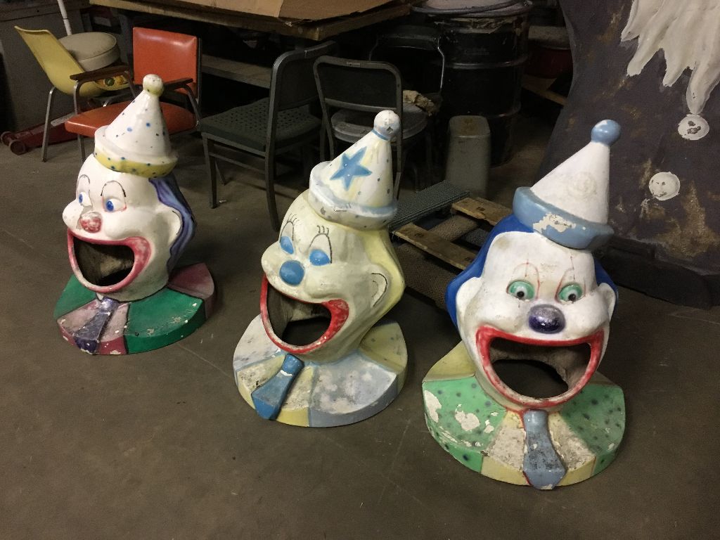 Vintage Fiberglass Amusement Park Clown Trash Can Lids