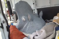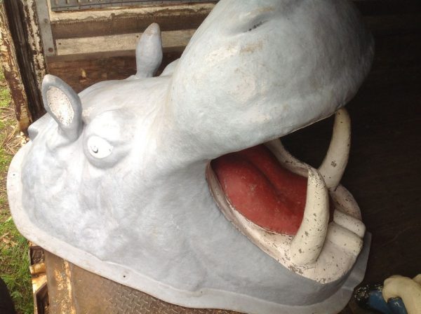 Large vintage fiberglass amusement park, miniature golf hippo in as found condition. Showing signs of use but overall a very nice example. Some minorĀ painting may be required but will display nicely as found……………..
