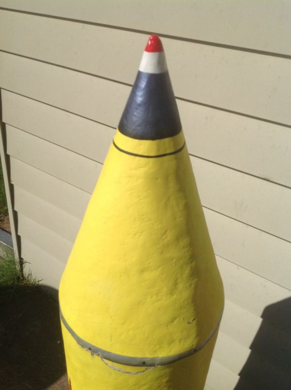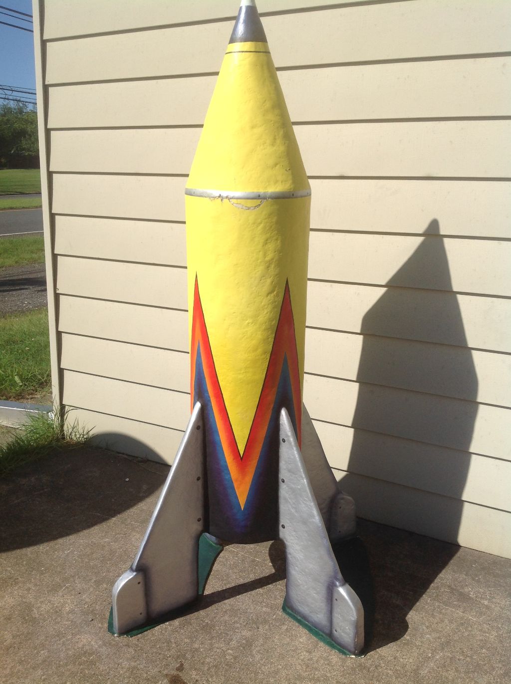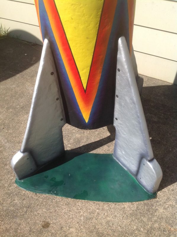 Vintage fiberglass miniature golf rocket in as found condition. Measures about 6′ tall. If you need exact measurements just ask. Beautiful shape and a hard one to find…………