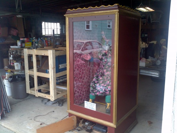 Vintage 1960’s funhouse, boardwalk laughing sal in working condition. Deposit 10 cents and watch as she laughs herself silly. Comes complete in her own glass enclosed cabinet. Drop coin mechanism may stick at times but otherwise she works beautifully. All she needs is a good home………….