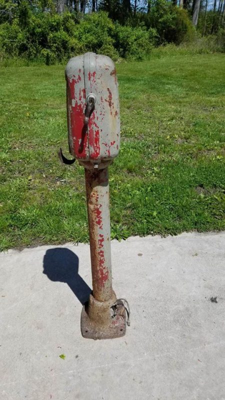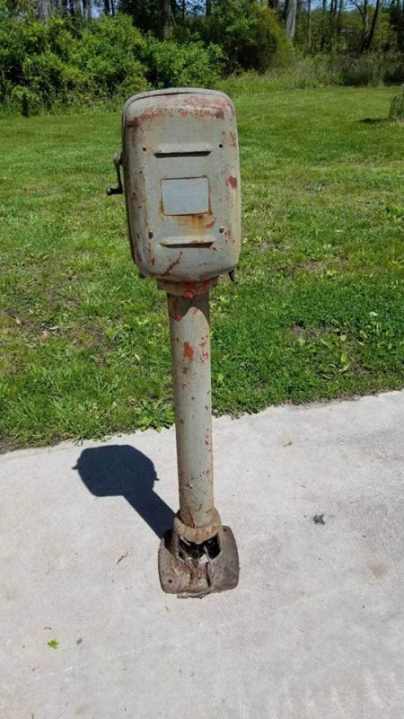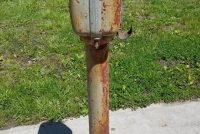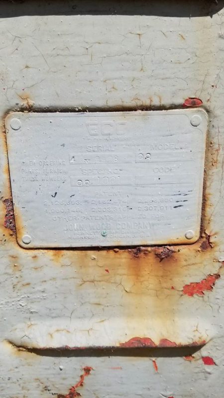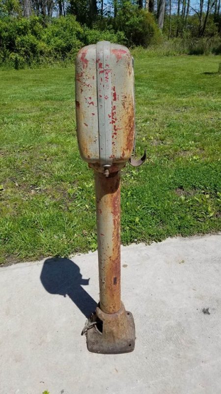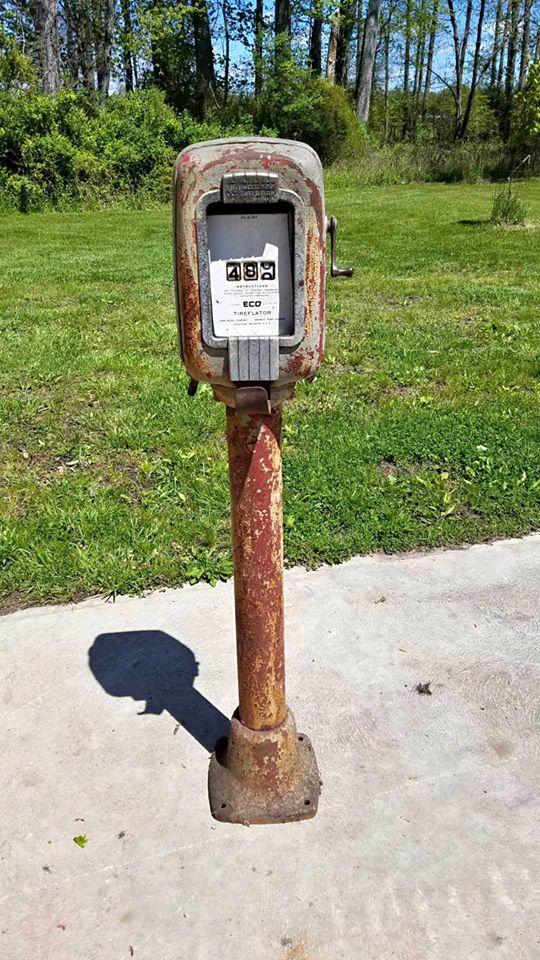Vintage gas filling station Eco tireflator in as found condition. Unit will need restoration and is missing front glass. Replacement parts are available from several online vendors, so restoration should not be difficult………….