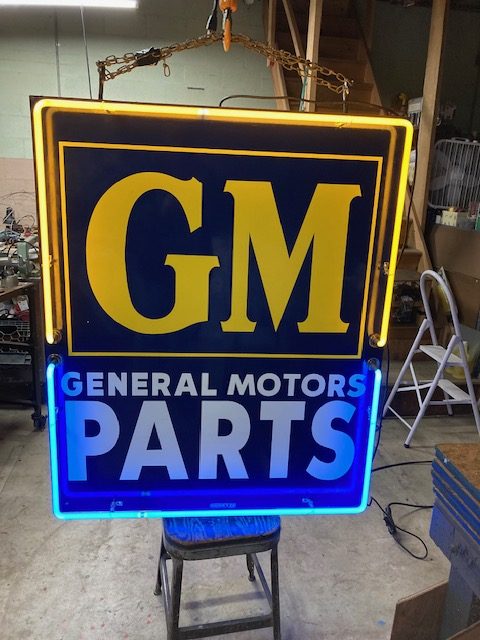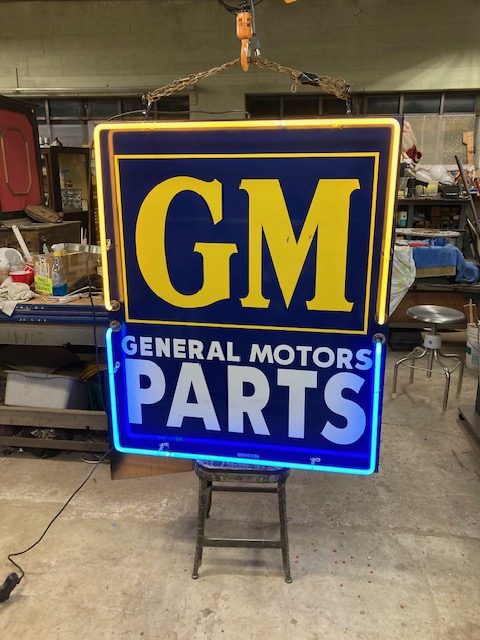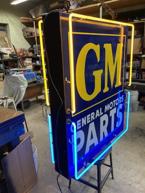 Vintage General Motors GM Double Sided Porcelain Neon Sign