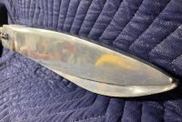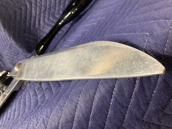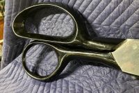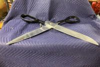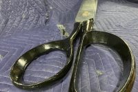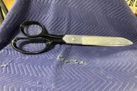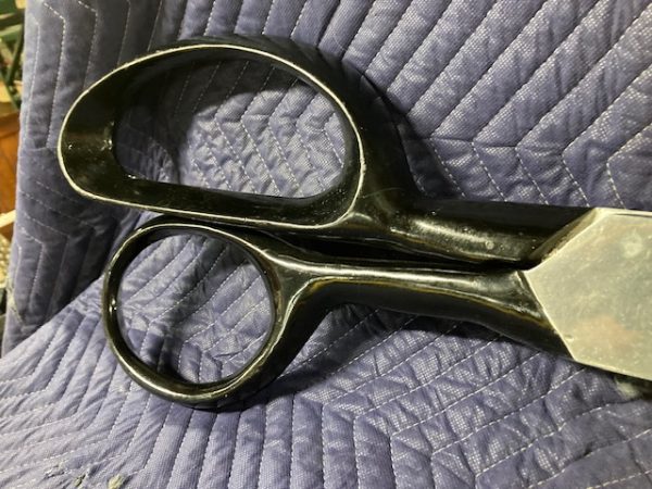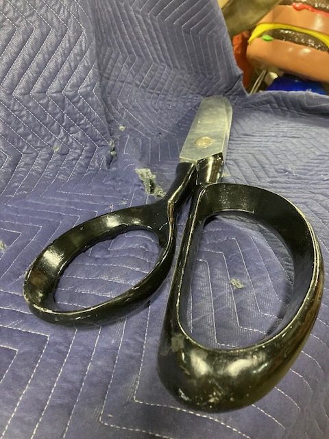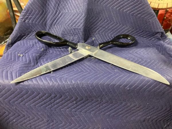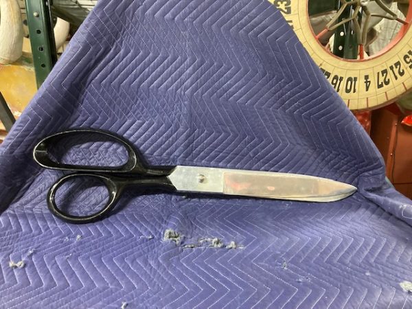 Vintage giant heavy metal scissors advertising trade sign in as found condition. This massive piece of art measures 36″ long x handle 10″ and blade 3″ Hard to find. Another great item to add to your collection………