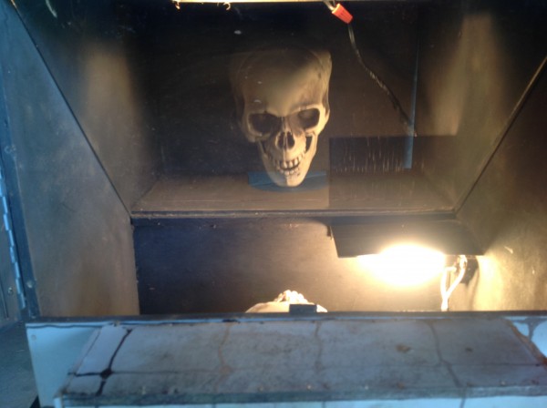 Vintage custom made head to skull Pepper’s Ghost illusion in as found working condition. Google Pepper’s Ghost and read about how the illusion works. Neat item for any magician………..