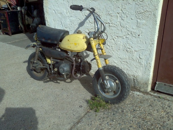 ..honda yellow mini bike 1 Honda mid 1970’s mini bike in as found condition. Will need restoration. Not sure if and what part are missing, so ask questions. Kids just love these early bikes……….honda yellow mini bike 2 honda yellow mini bike 3 honda yellow mini bike 4 honda yellow mini bike