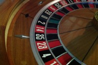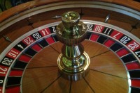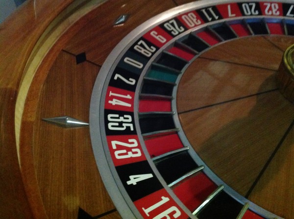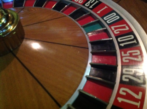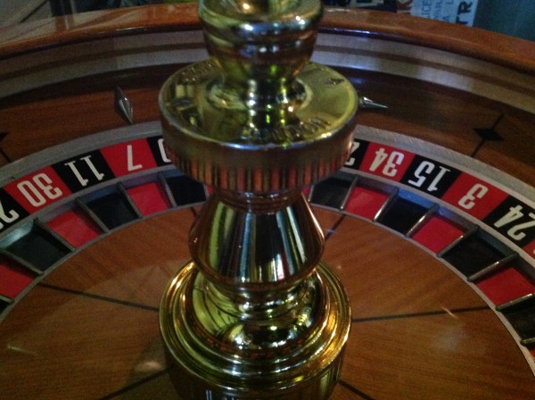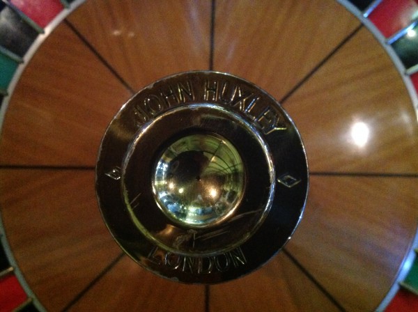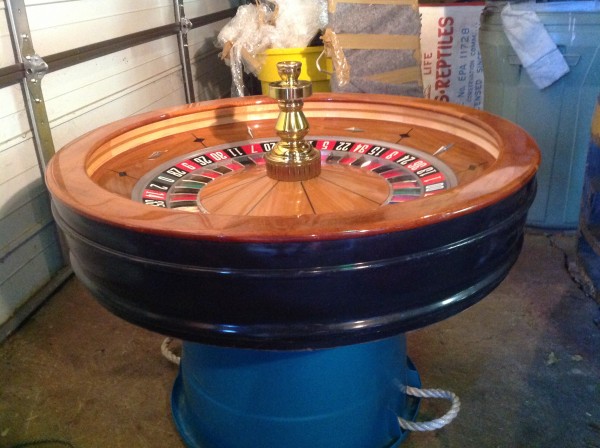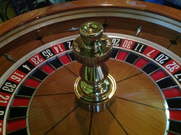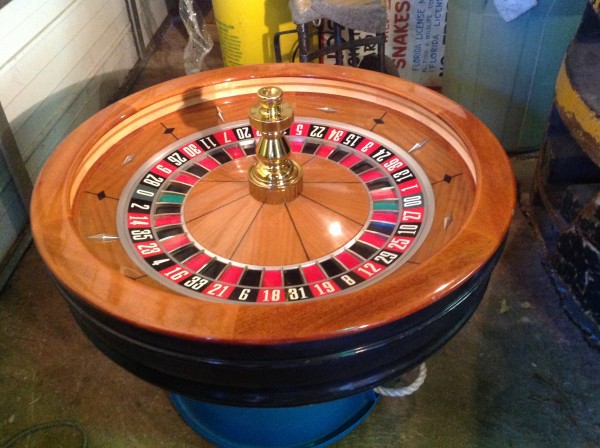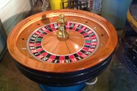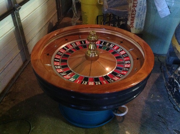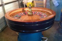 Vintage original 32″ casino Huxley “0” “00” roulette gambling wheel in as found condition. Spins well. Only flaw is a wood knick on the base side. Flaw does not take away from the look or functionally. A real winner…………..