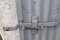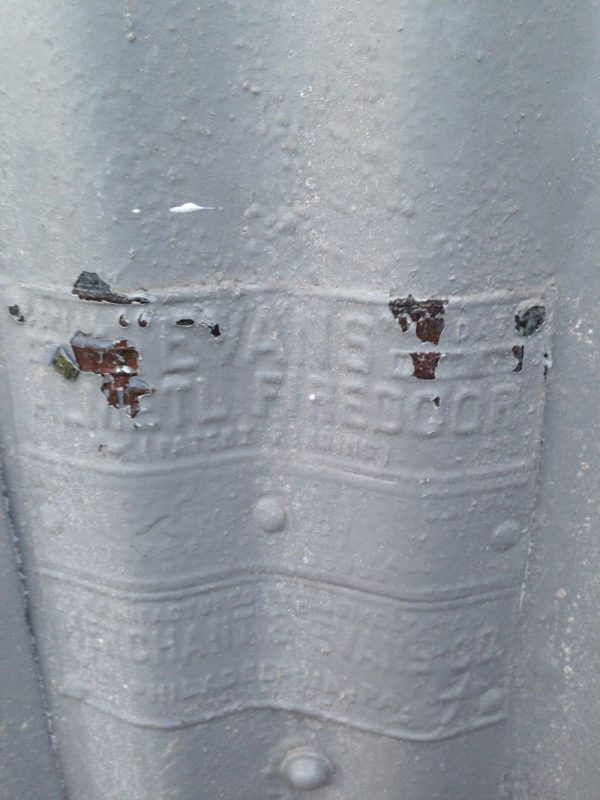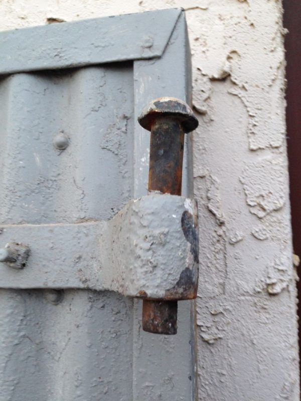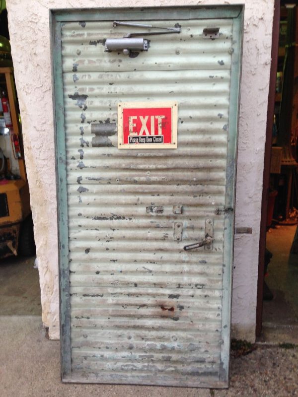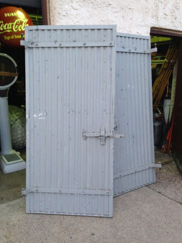 Salvaged, vintage industrial Evans fire doors from an old Philadelphia building now going “Condo”. Doors measure about 6′ x 4′ with heavy steel construction. Two available. Think of the possibilities………….