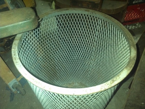 Vintage 1950’s heavy industrial metal trash can in as found condition. Will look good in your “man cave”……..