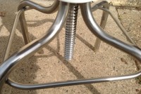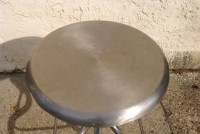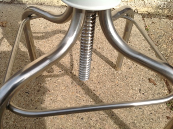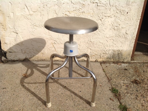 Vintage industrial stainless steel Doctor’s lab stool in as found condition. Heavy construction with screw up stool, missing two rubber foot covers. A must for the powder room……….