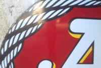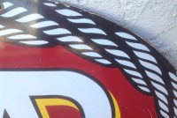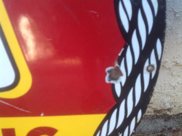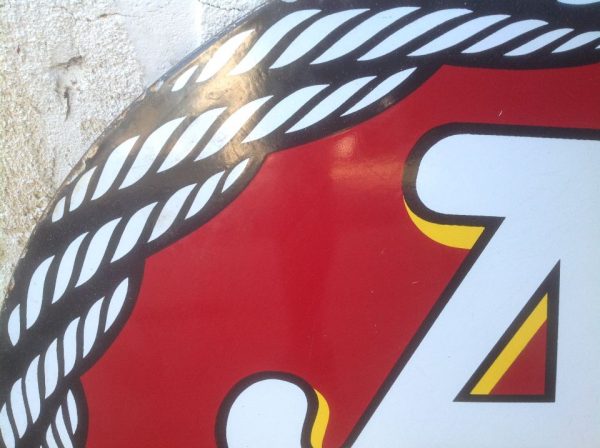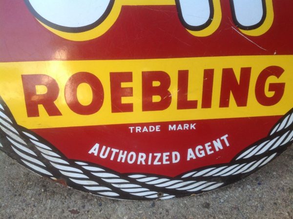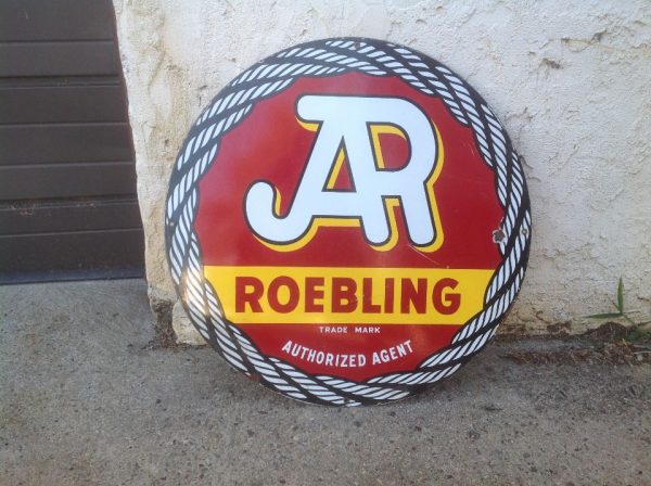 Vintage rare JAR Roebling authorized agent porcelain over steel sign in as found condition. Near mint with only a few chips with bright colors. Measures 24″………….