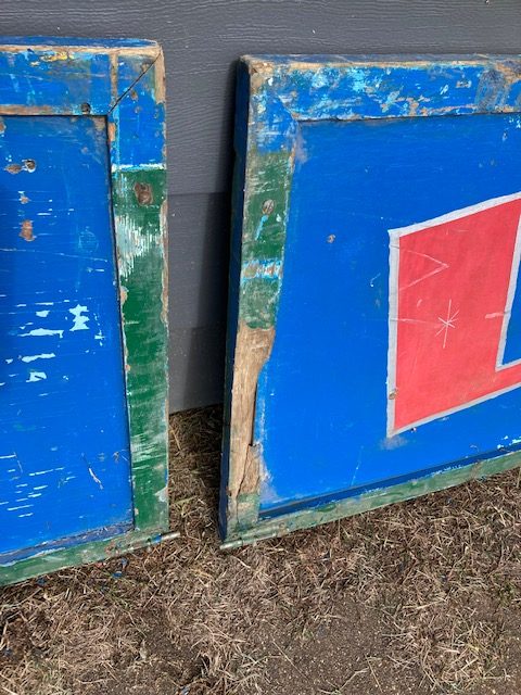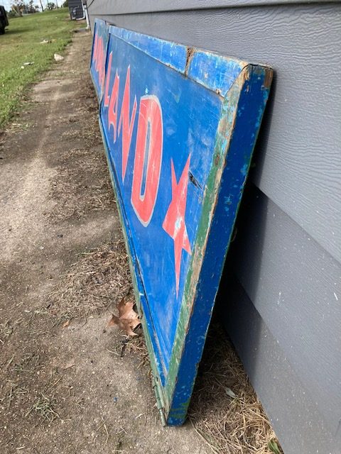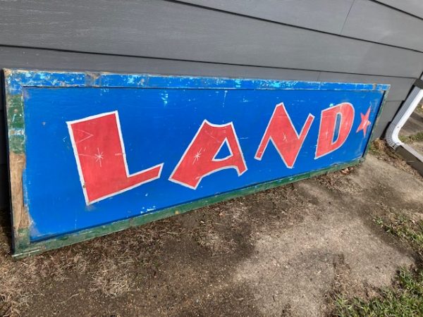 Vintage Kiddy Land carnival amusement park sign in as found condition. Painted wood sign measuring 8′ long x 2′ high. Nice patina……….