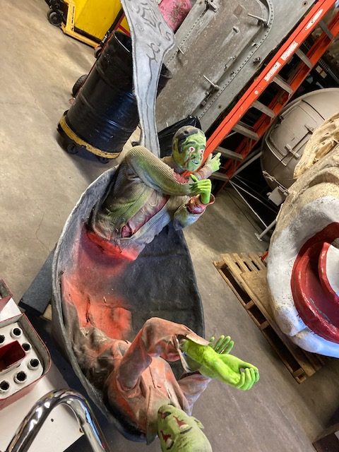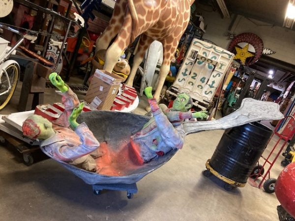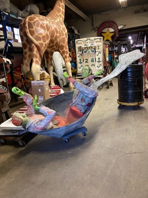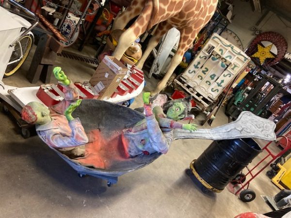 Vintage Land Of The Giants dark ride fun house display in as found condition. 12′ long and well constructed. True piece of fun house memorabilia………..