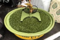 Most unusual vintage lawn, grass trade stimulator in as found working condition. Fill the greentub with water and watch as the lawn sprayer sprays the turf within the plastic dome. Real neat advertising piece…………..