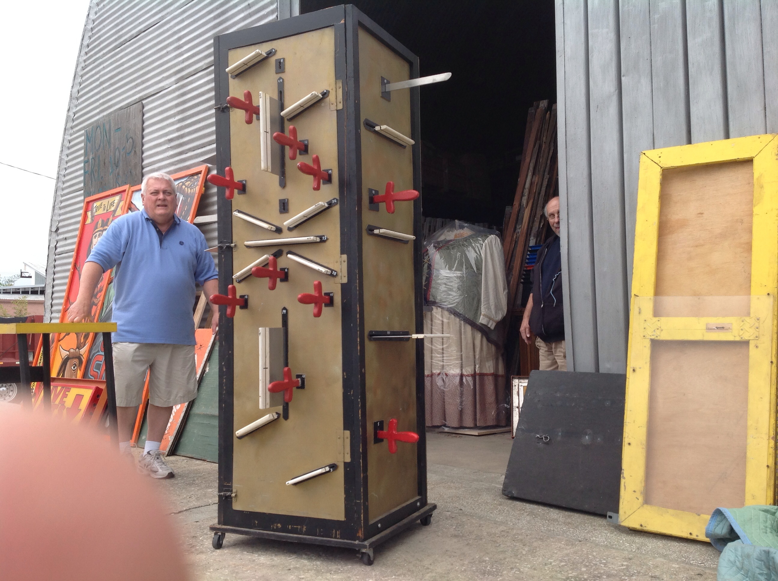 Vintage magic sideshow sword blade box used along a carnival midway back in the 1970’s. In as found condition with some restoration needed. Will need two large metal swords made as well as three sword knives with red handles. Comes complete with numbered box to house swords. Do you know the illusion???????