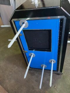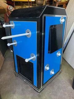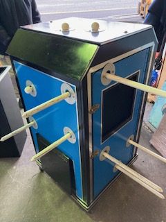 Vintage tubed out magic trick sword box illusion in as found condition. A magic illusion where the magician makes it appear as if he is impaling an assistant with swords while the assistant is inside the box. After swords are all inserted and removed the assistant emerges unharmed, astonishing the audience. Great overall shape…………