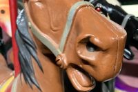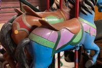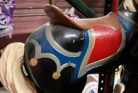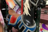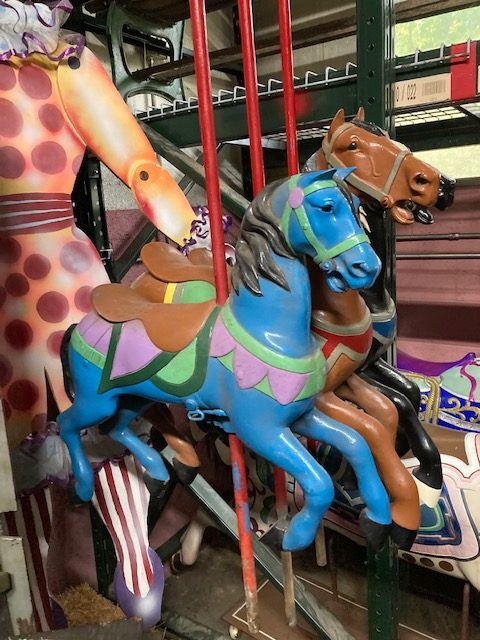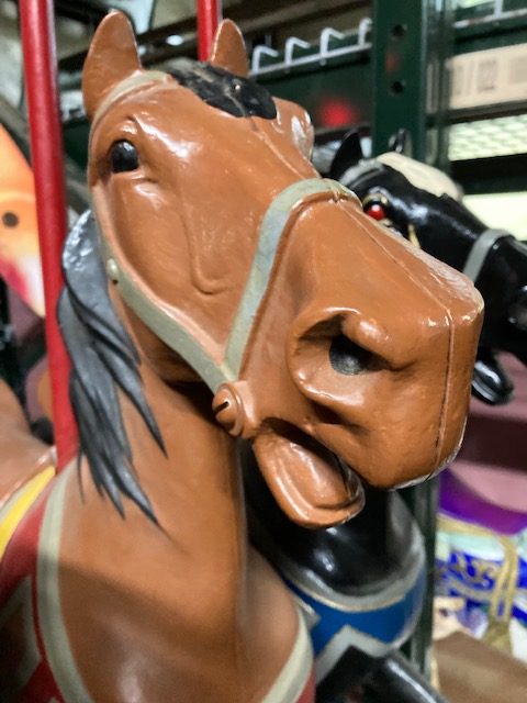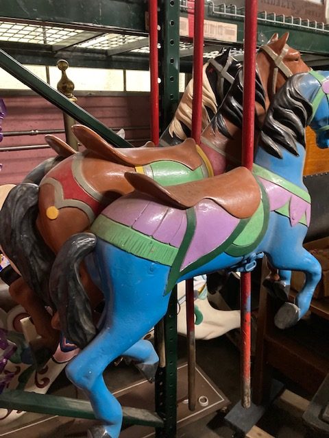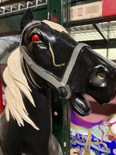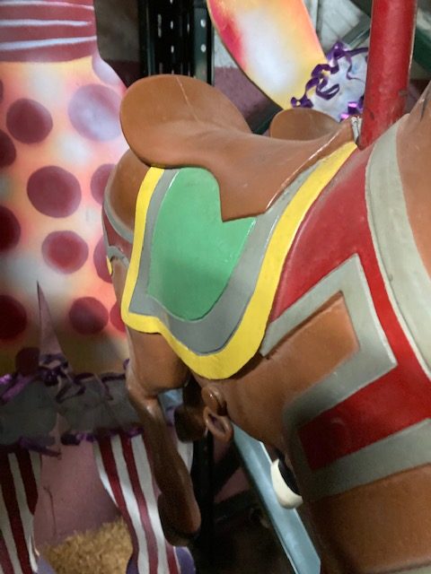 Vintage original metal Merry Go Round Carousel horses in as found condition. Nicely pained with pole included. Horses off of a traveling carnival carousel from the late 1950′-1960’s. 3 available……..