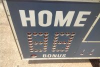 Vintage mid-century Boys Club Of America scoreboard in as found condition with controller. Unit has not been tested but worked when removed 15 years ago. A great gameroom addition……………