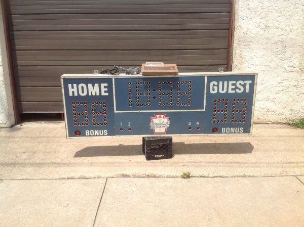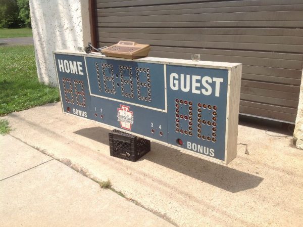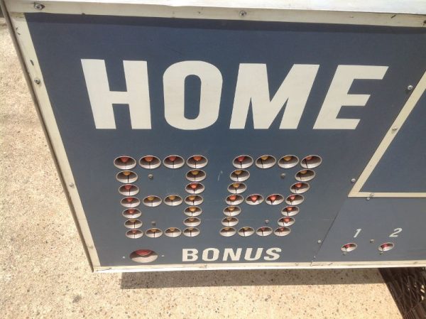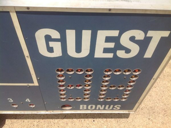 Vintage mid-century Boys Club Of America scoreboard in as found condition with controller. Unit has not been tested but worked when removed 15 years ago. A great gameroom addition……………