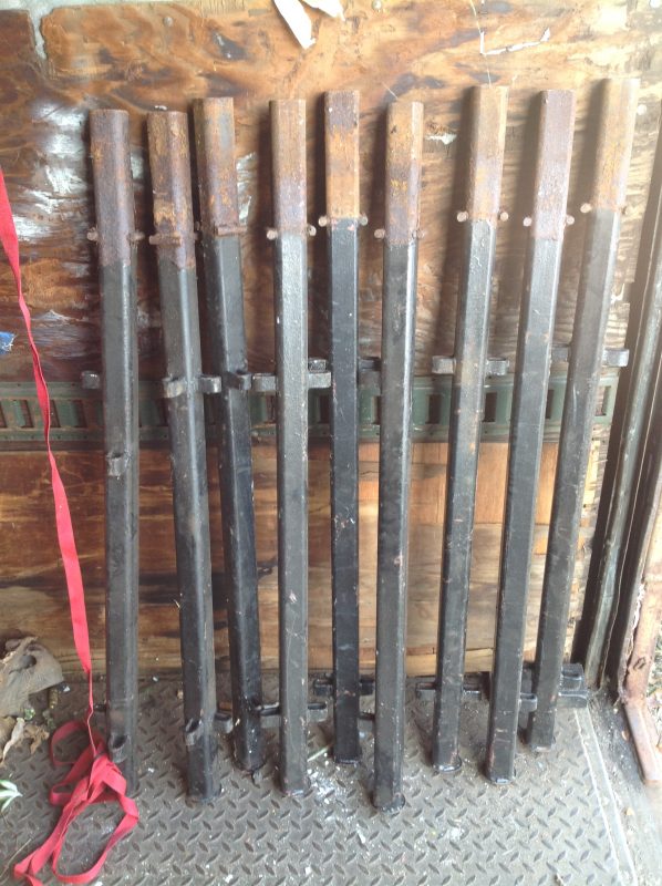 Vintage Mid Century Coney Island Astroland Dante’s Inferno fence in as found condition. 8 sections with 9 posts measuring as follows:
