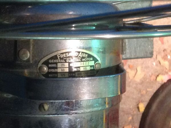 Nice old vintage Mid Century modern Fresh’ne Aire Fan in as found condition. After almost 40 years in storage, the fan will need to be polished and serviced. Overall in great shape………..