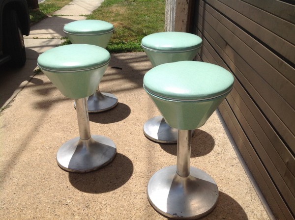 Groovy…. Ice cream polar/ luncheonette stools in as found condition. Recovered many years ago by the previous owner.