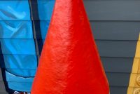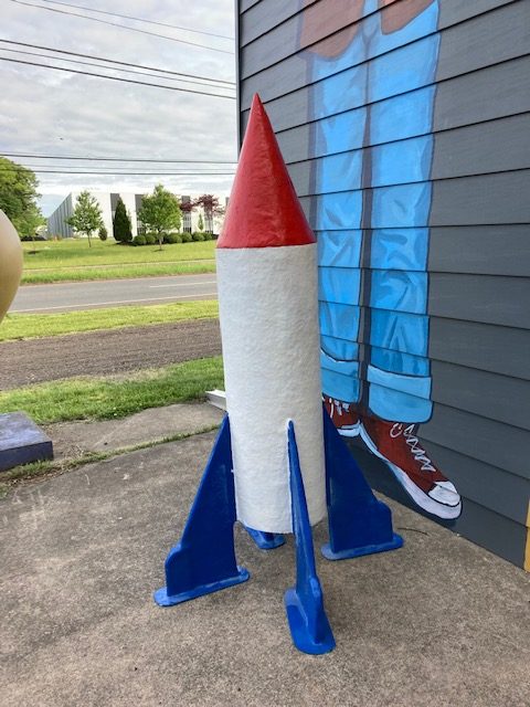 Vintage Miniature Golf fiberglass 6′ tall rocket in as found condition. Nicely made, good colors and ready for displaying.