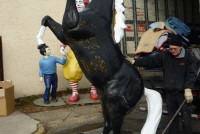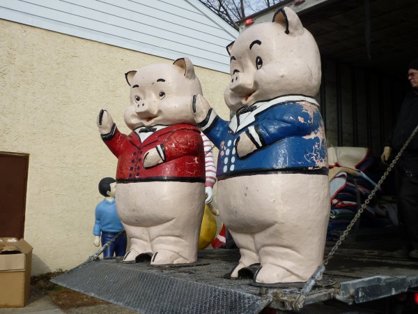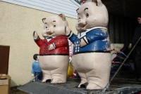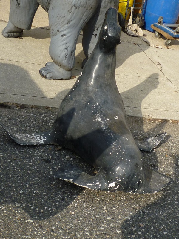 Up for grabs is a collection of vintage 1950’s fiberglass miniature golf animals and figures. Some may need painting, some may need fiberglass repair but all are complete with the exception of the seal that is missing his ball. The seal was animated at one time. Buy one or all, it’s up to you. Call or email for prices and availability….