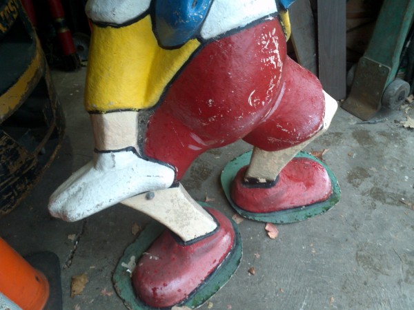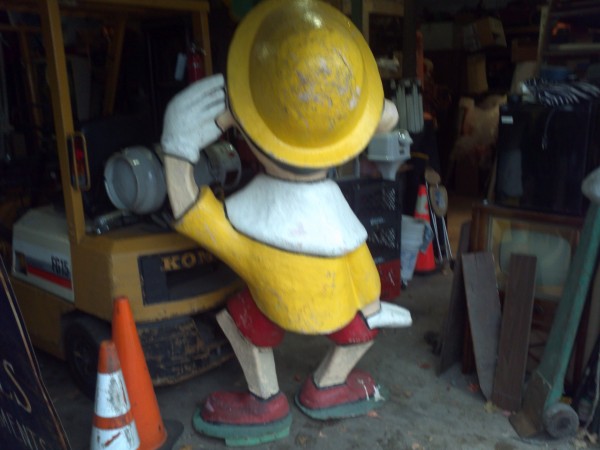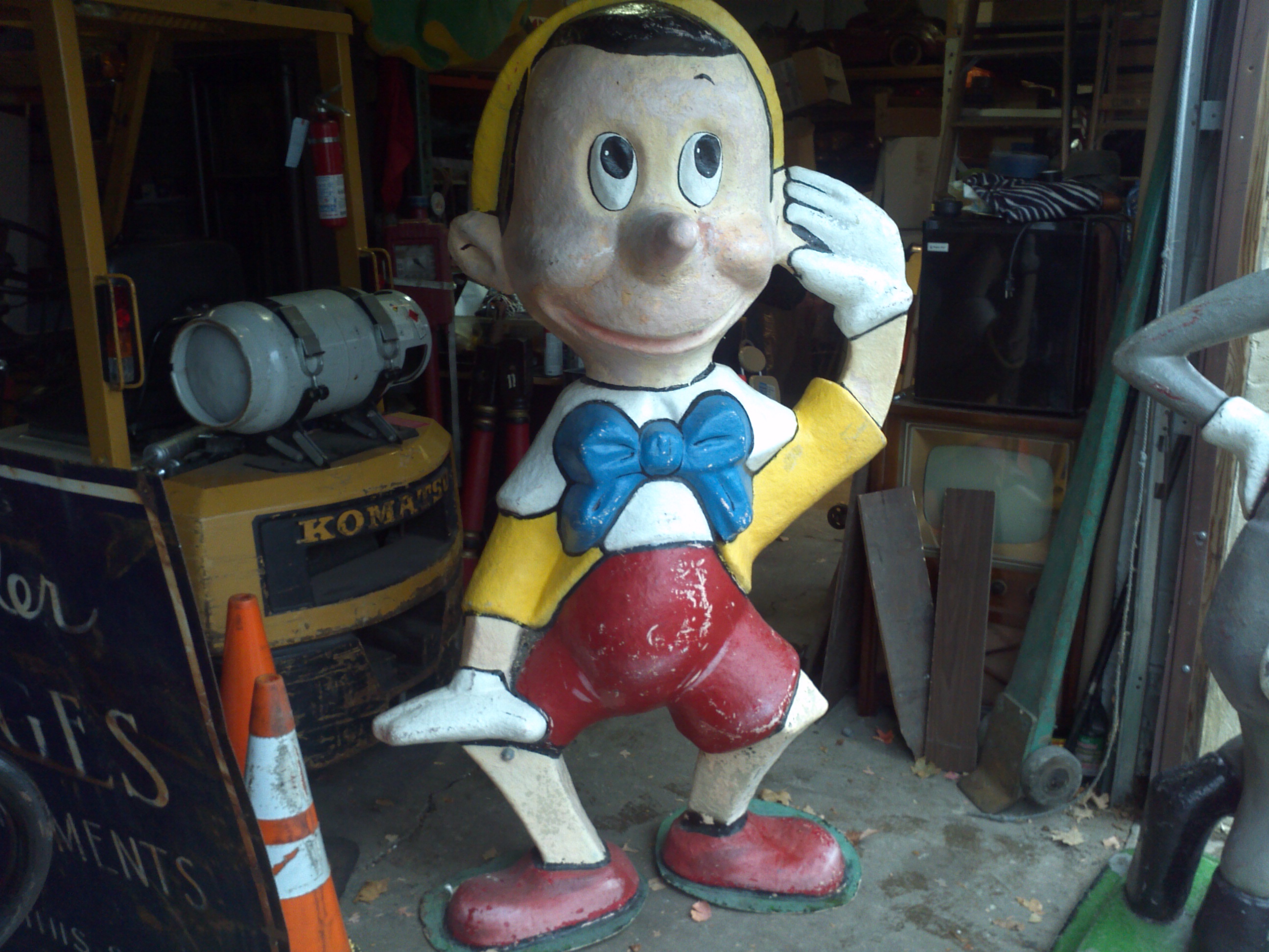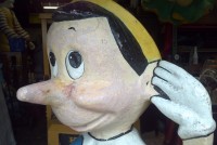 Giant fiberglass miniature golf Pinocchio figure in as found condition. Lots of park paint with a few minor restorations needed. Nice item for a childs room or lawn ornament. Pinocchio can be professionally painted at an additional charge. Email or call……….