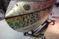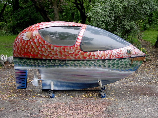 Paddle boat joint venture between yacht designer and sailing innovator Garry Hoyt and the Harken brothers, the high end sailboat manufacturers. Named “Waterbugs” , these boats were only produced for a very short time during the 1980’s. Purchased from a gentlemen in Cherry Hill, New Jersey who paddled for hours on his own private lake. The boat works fine and outer surface professionally restored by a local artist. One of the side windows is missing and a few minor tears are visible to the upholstery but otherwise in good condition. Need additional information, call or email……….