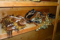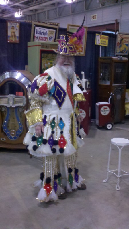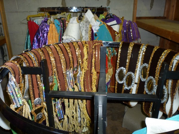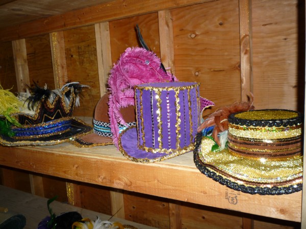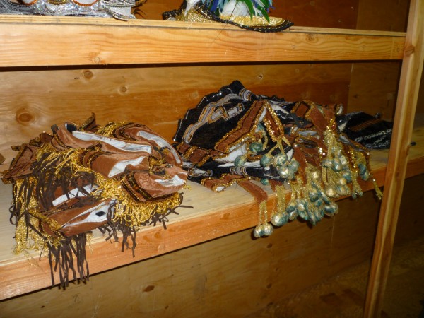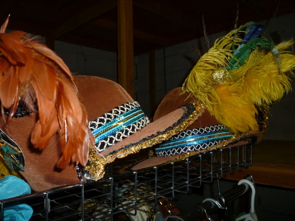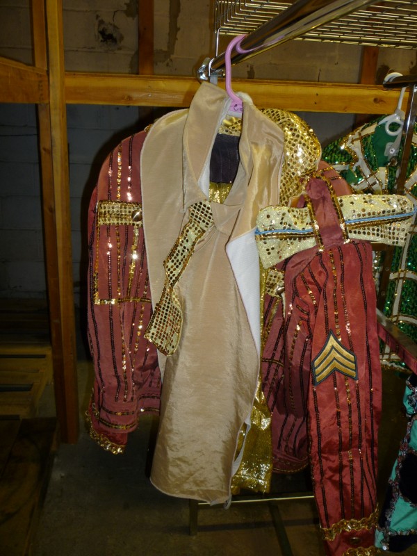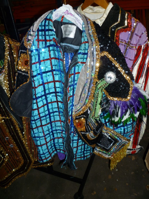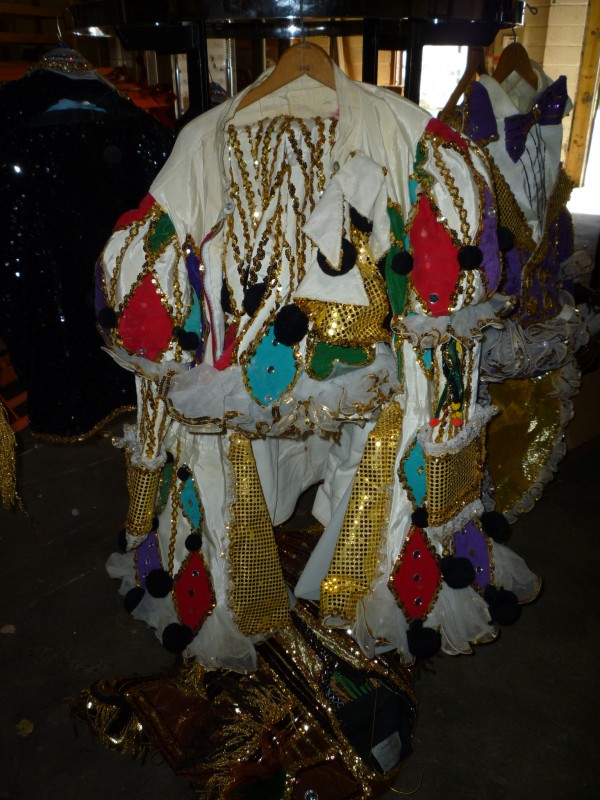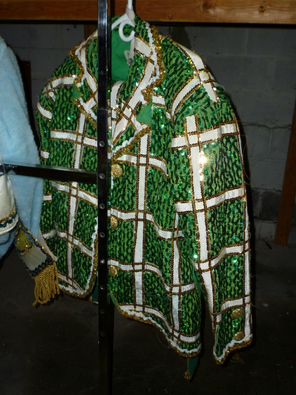 Large collection of vintage mummer costumes . Hats,belts, pants…. There are fifty five vintage well made costumes in all. You can by the whole collection or one.