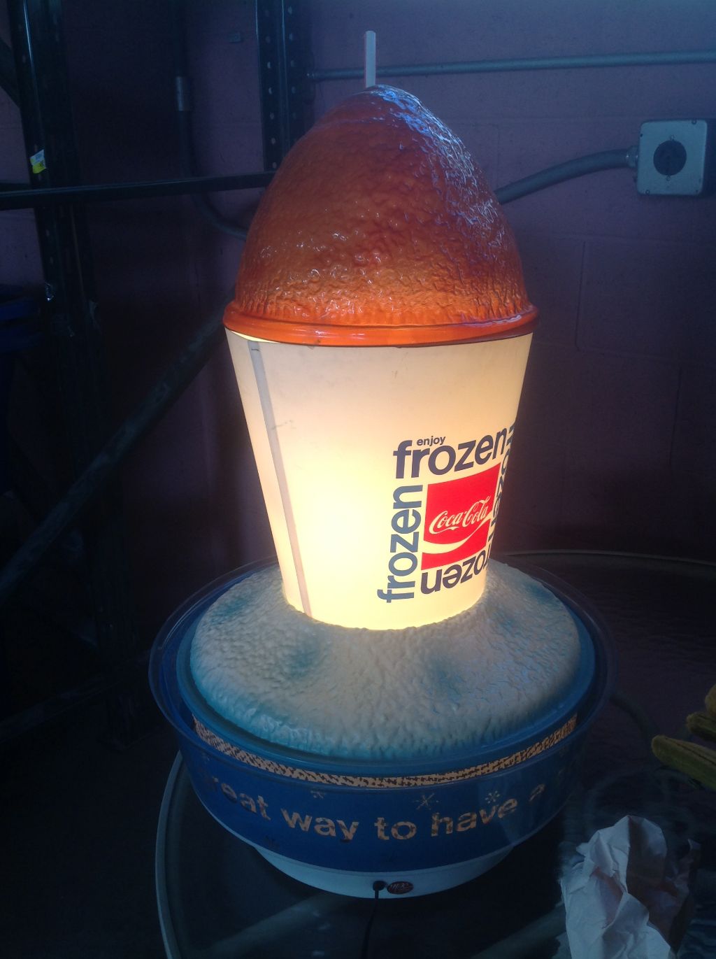 Vintaged new old stock Coca Cola frozen beverage rotating display in as found condition. Pulled from a recent storage buy-out. Appears to never been used. Very nice overall condition………